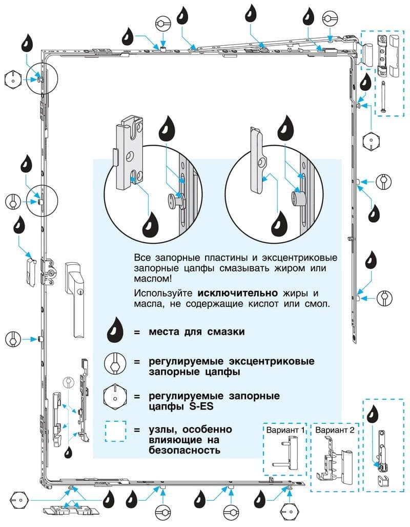 Vous pouvez utiliser : des produits spéciaux pour l'entretien des fenêtres en plastique, des lubrifiants pour machines à coudre et vélos, des lubrifiants ménagers (pour charnières de porte, etc.). Ne pas utiliser : les huiles végétales, la vaseline, certaines huiles pour automobiles et armes, les produits contenant du kérosène, des acides et des alcalis.