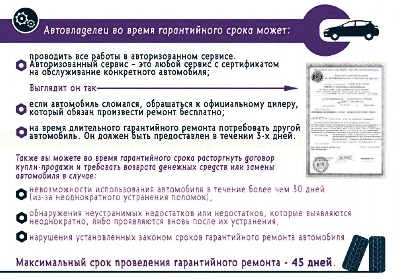 Selon la loi, pendant la durée de vie standard, le fabricant s'engage à offrir au consommateur la possibilité d'utiliser le produit aux fins prévues et est responsable des défauts existants. Autrement dit, le propriétaire de la voiture a le droit de contacter le constructeur pour lui demander une solution gratuite aux problèmes découverts pendant cette période.