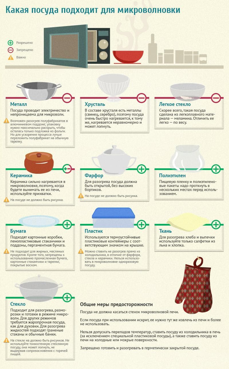 Pour cette raison, les fabricants de fours à micro-ondes recommandent d'acheter des ustensiles spéciaux pour réchauffer et cuire les aliments dans les fours à micro-ondes. Il ne contient aucune substance conductrice, telle que des métaux. Si vous utilisez une tasse ou une assiette provenant d'un service de table ordinaire, il y a une forte probabilité qu'elle devienne très chaude, empêchant en même temps la pénétration des micro-ondes dans l'épaisseur de l'aliment à chauffer.